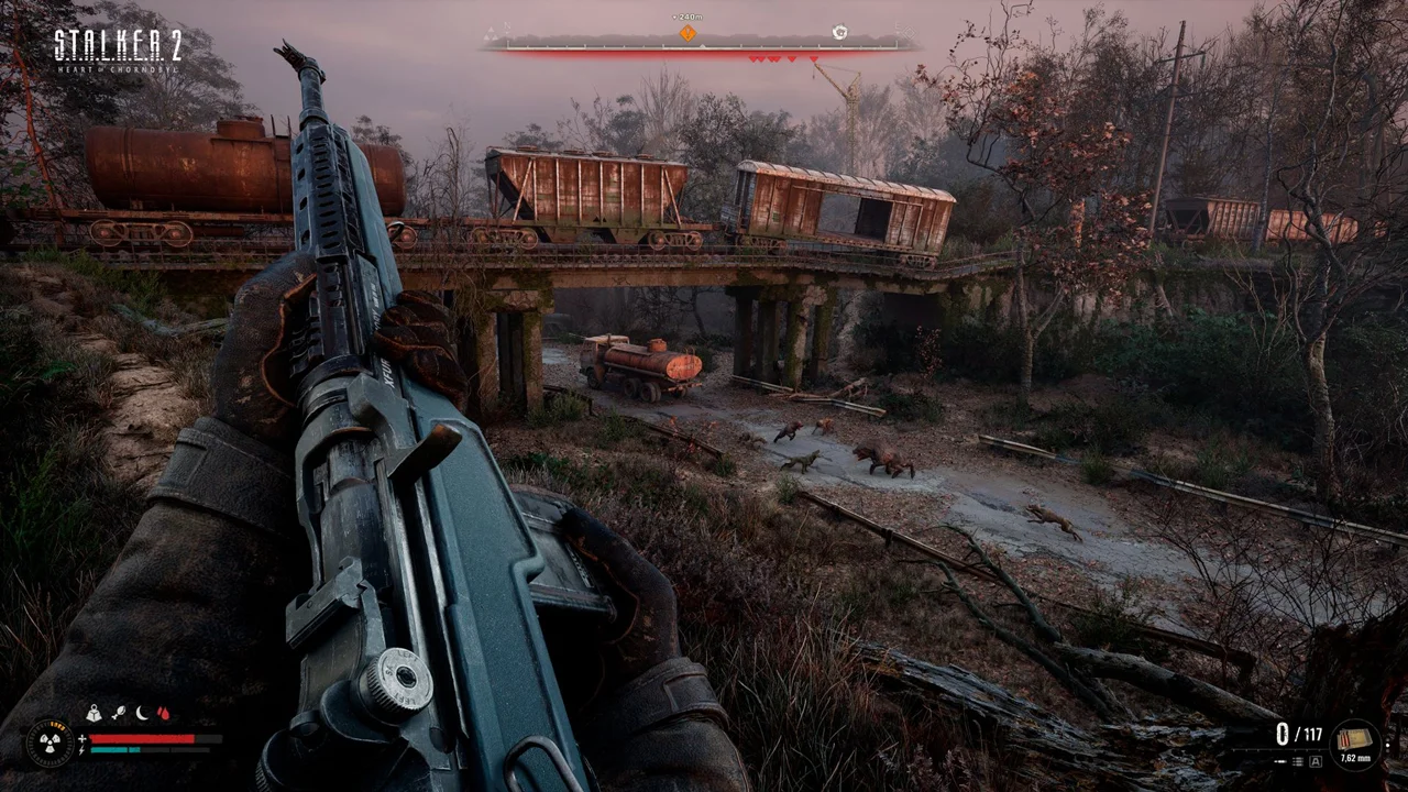 همانند عناوین جدیدتری که از موتور Unreal Engine 5 استفاده میکنند، بازی STALKER 2 نیز از قابلیتهای پیشرفته بصری و فوقالعادهی این موتور مدرن استفاده میکند. وجود مکانیکهایی همچون Nanite، سیستم نورپردازی Lumen و سیستم رهگیری پرتو (Ray Tracing) باعث ایجاد جلوههای بینظیر، اتمسفرهای بسیار سنگین، محیطهای بعضا زیبا و اغلب وحشتناک میشود.